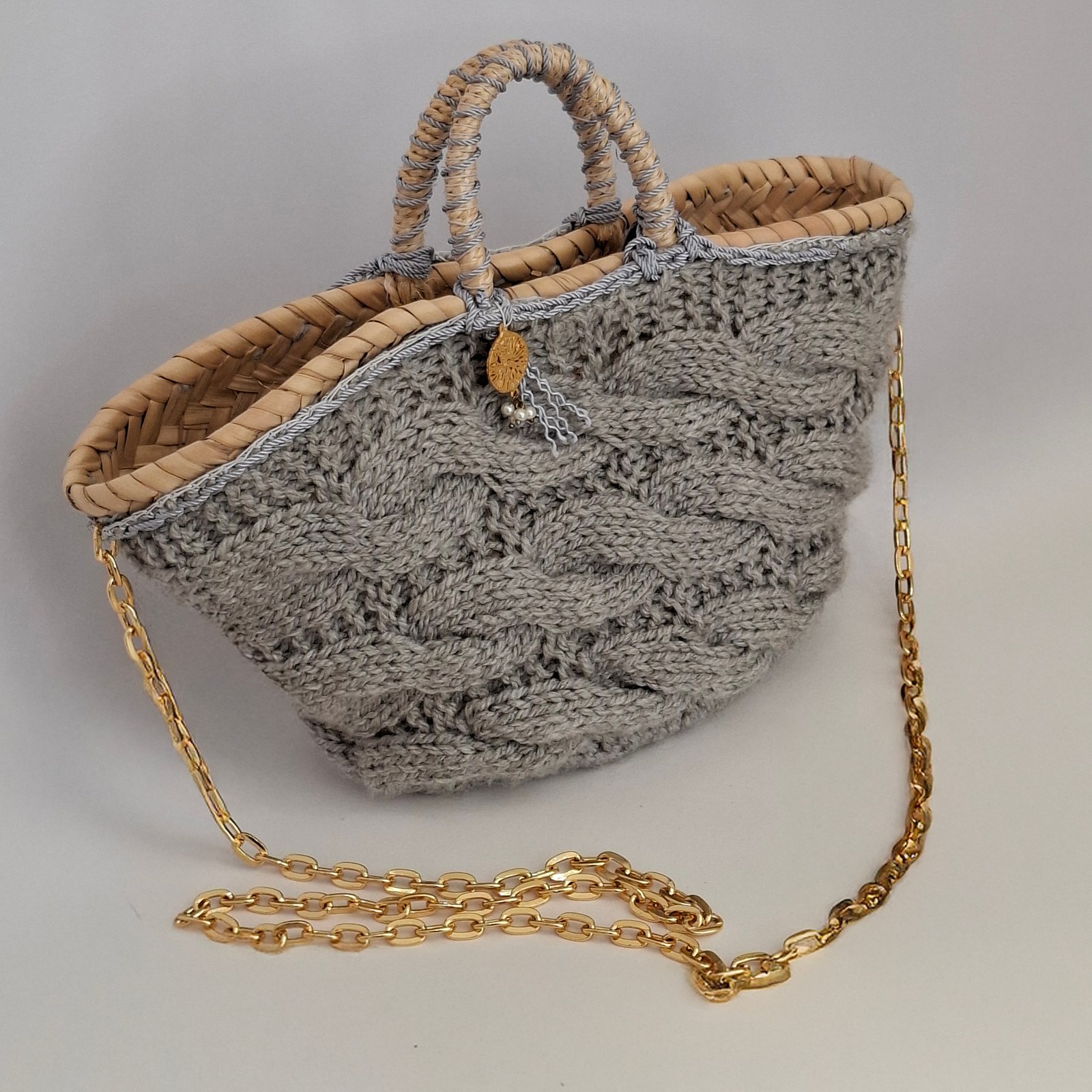 Malas cestas em verga forradas a lã - Cinza claro